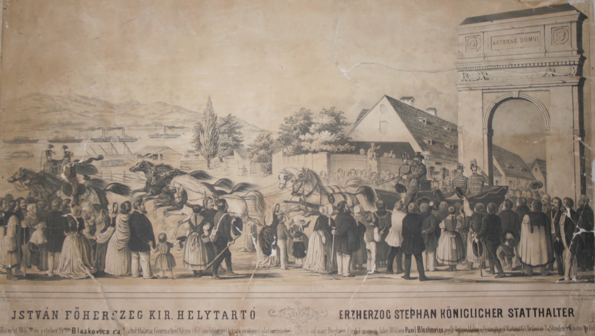 Az utazás végén, október 14-én Balassagyarmatról indult vissza Pestre. A tervek szerint Vácig kocsin, onnan vasúton tette meg az utat. A kocsis nem volt más, mint az akkor már 45 esztendős Blaskovich Pál. Neve ismerős lehet: nagyapját, szintén Blaskovich Pált a váci domonkos kriptába temették. A felvidéki birtokos nagyon szerette és ismerte a lovakat. Kiváló kocsihajtó volt, és a merészség sem állt távol tőle. Felajánlotta, hogy saját kocsiján, saját lovaival viszi a leendő nádort Vácra. A korabeli utak – a tengelytörés kockázata miatt – lassú haladásra kényszerítették a kocsikat. Még a legvakmerőbb kocsis sem tette meg a Balassagyarmatról Vácig tartó – bár a korabeli leírások szerint az egyik legszebb – utat 3 óránál rövidebb idő alatt. Blaskovich egyes források szerint másfél, egy, a múzeumban lévő kőrajz alatti szöveg szerint két óra és öt perc alatt ért a főherceggel Vácra. El is terjedt a mondás: „Hajt, mint egy Blaskovich!”.